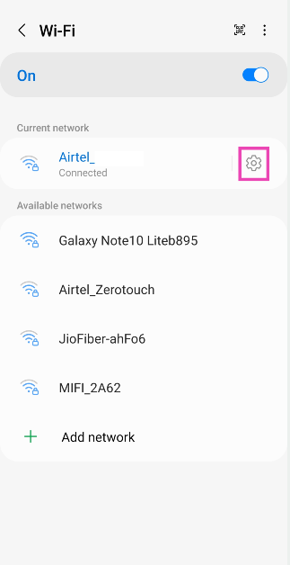 Etapa 3:Toque noícone de engrenagempróximo à rede conectada.