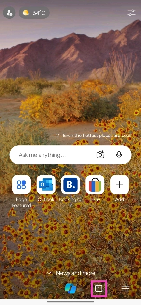 Desative o modo de navegação anônima no Microsoft Edge para Android