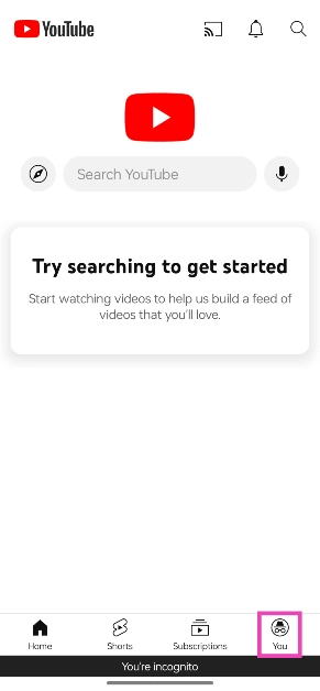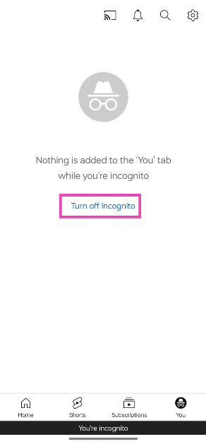Mude para a guia ‘Você’ e selecione ‘Desativar navegação anônima’. Você será redirecionado para sua página inicial personalizada do YouTube.