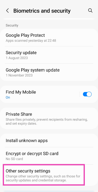 Etapa 2:Toque emOutras configurações de segurança.