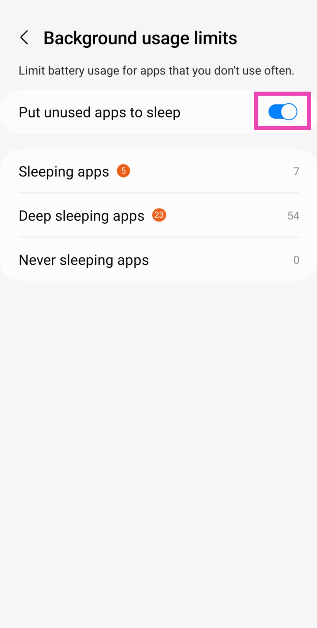 Como medida geral, você pode optar por desativar automaticamente os aplicativos não utilizados em seu telefone. Assim que seu telefone perceber que você não abre um aplicativo há muito tempo, ele pausará automaticamente sua atividade em segundo plano e o colocará em suspensão. Veja como você pode ativar esse recurso.