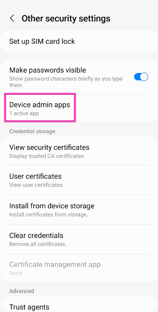 Etapa 3:SelecioneAplicativos de administração de dispositivos.