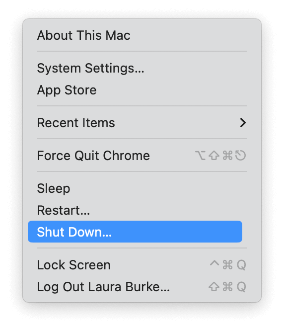 - Desligue o seu Mac no menu principal da Apple.