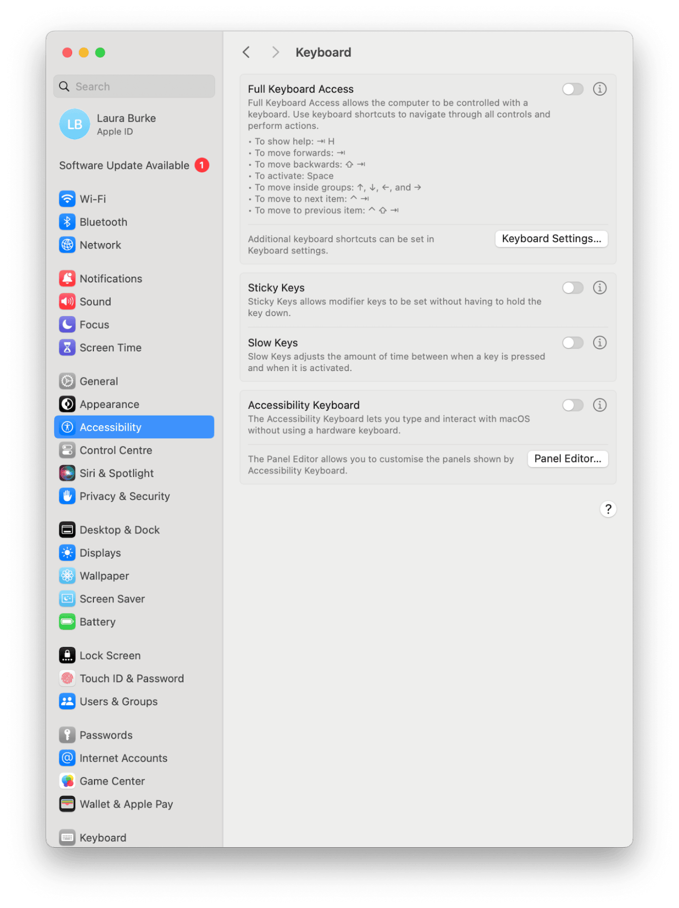 - Selecione o menu principal da Apple > Configurações do Sistema > Acessibilidade.