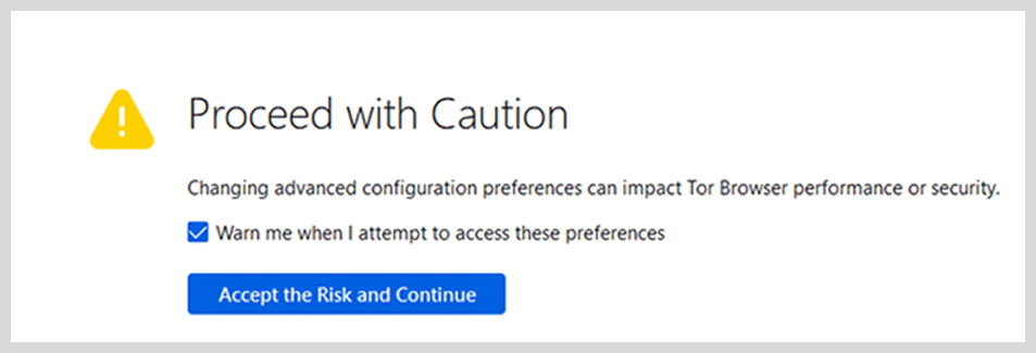 - Vous rencontrerez un avertissement indiquant que vous entrez dans le niveau de configuration avancé.Procéderetcliquezsur le "Acceptez le risque et continuez le bouton.”