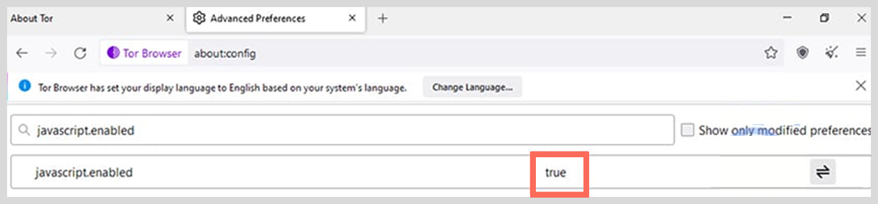 Voici comment désactiver JS (JavaScript) sur le navigateur Tor à l'aide des paramètres avancés :