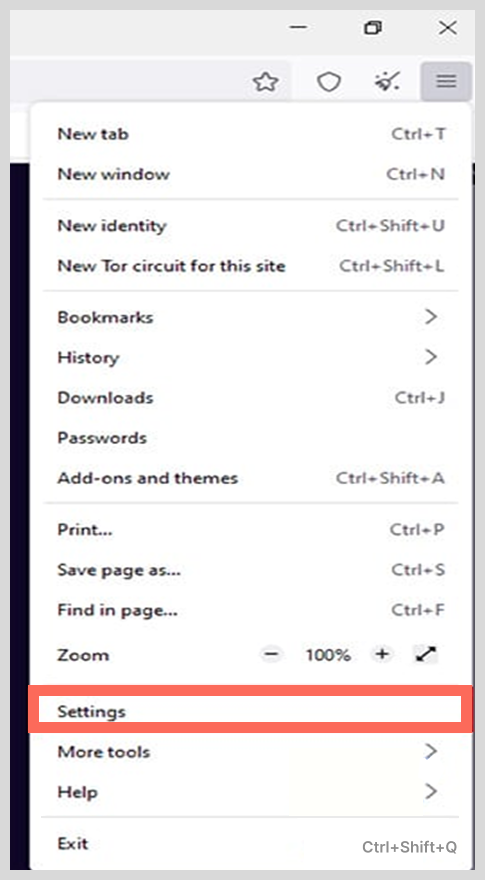 - D'abord,ouvrirNavigateur Tor, puiscliquezsur le "icône de hamburger (trois lignes horizontales)» dans le coin supérieur droit.