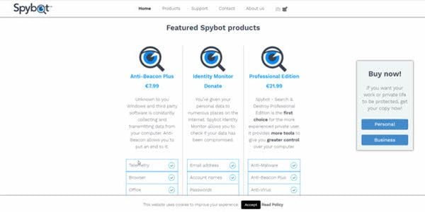 Il fournit des solutions contre les logiciels espions, les logiciels malveillants, les cookies intrusifs, le blocage des publicités, la suppression des applications indésirables, la gestion des démarrages et les scanners de rootkits pour votre appareil. Spybot prend en charge Windows 7 et 10 et ne nécessite aucune création de compte pour les téléchargements (c'est facultatif).