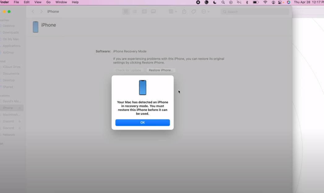 - Après être entré en mode DFU, une fenêtre contextuelle apparaîtra sur votre ordinateur et vous pourrez alors suivre les instructions pour mettre à niveau ou rétrograder votre iPhone 11.