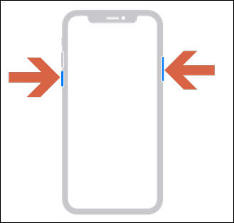 - Appuyez et maintenez enfoncés le bouton droit de l'iPhone et le bouton de volume gauche pendant un moment