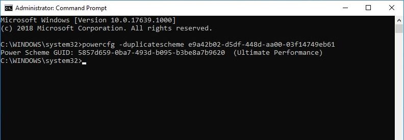 powercfg -duplicatescheme e9a42b02-d5df-448d-aa00-03f14749eb61