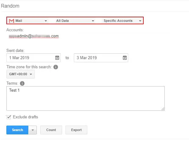 Vous pouvez extraire des données Google Workspace au format MBOX, filtrées en fonction de, à, sujet, a : pièce jointe, phrase exacte et même exclure certains termes.