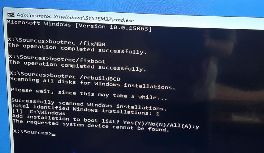 Bootrec /rebuildbcd