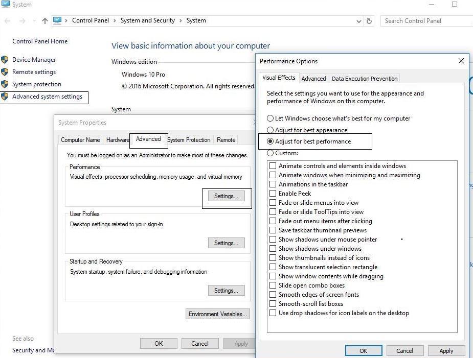 Ajuster Windows pour obtenir de meilleures performances gérera tout, y compris la planification du processeur et l'utilisation de la mémoire, pour arrêter les fuites de mémoire et l'utilisation élevée de la mémoire ntoskrnl.exe.