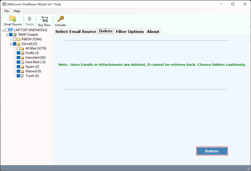 - Cliquez maintenant sur leSupprimerbouton pour commencer à supprimer définitivement les e-mails Yahoo.