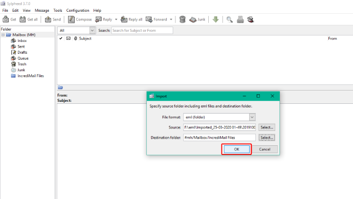 Phase 2 : Importer les e-mails IncrediMail vers Sylpheed