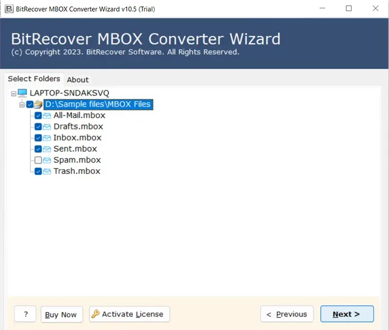 2. Sélectionnez votrefichier MBOX individueloudossier entieravec des fichiers MBOX.