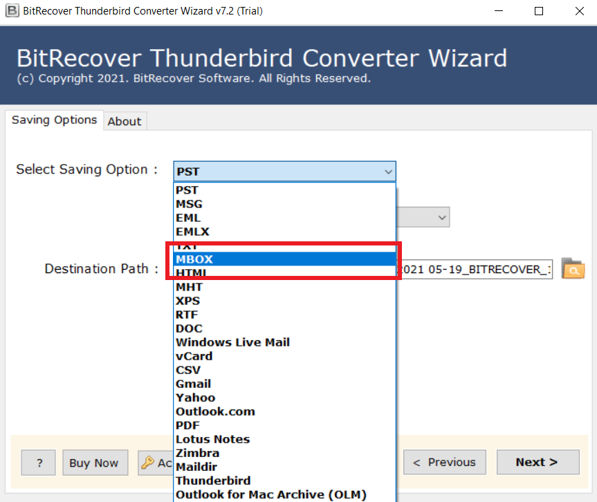 - Après cela,exporter les e-mails Thunderbird vers MBOXformater à l'aide du logiciel.
