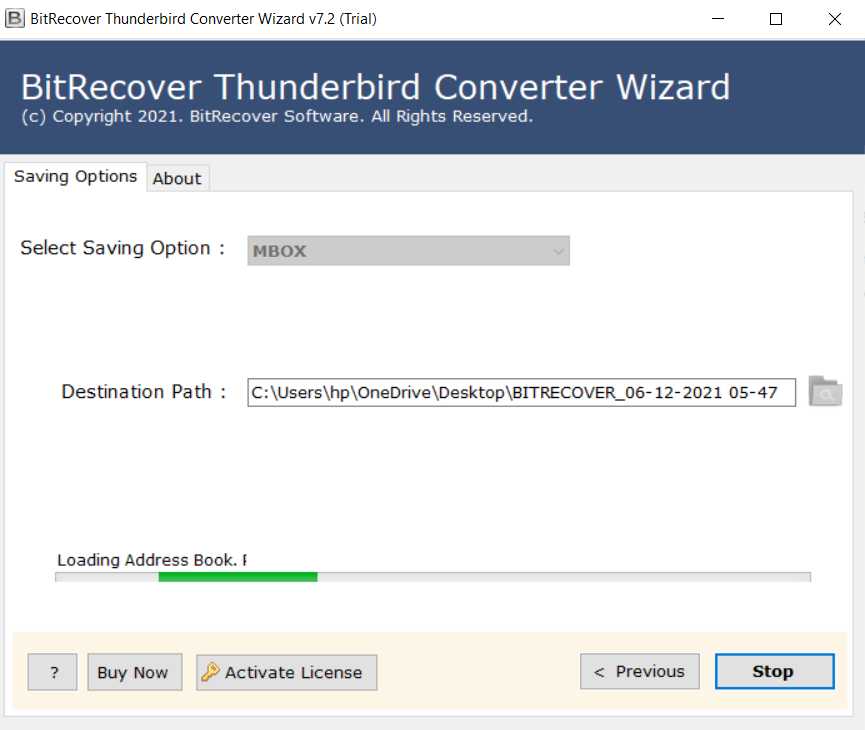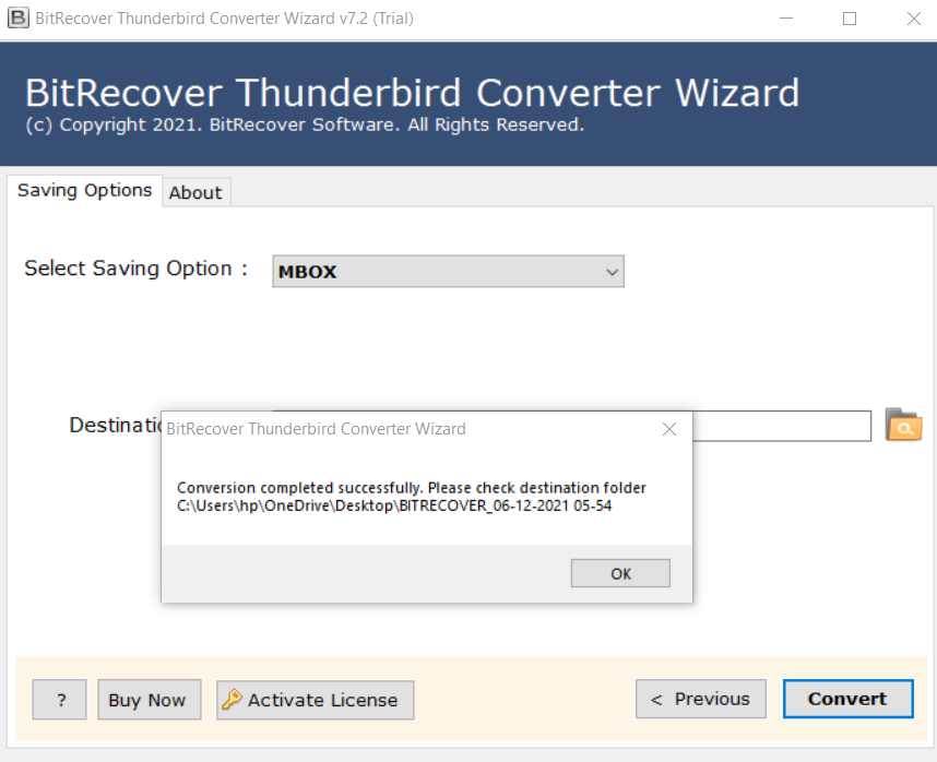 - Enfin, votreles données résultantes seront enregistréessur le chemin de destination au format sélectionné (MBOX) pour migrer Thunderbird vers Mac Mail.
