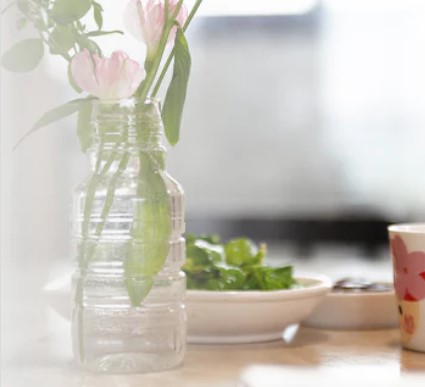 - Fleurs en bouteille d'eau :Coupez le fond des bouteilles d'eau en plastique et peignez-les de la couleur de votre choix. Attachez vos fleurs à des pailles pour créer des tiges. Réalisez plusieurs fleurs pour créer un magnifique bouquet.