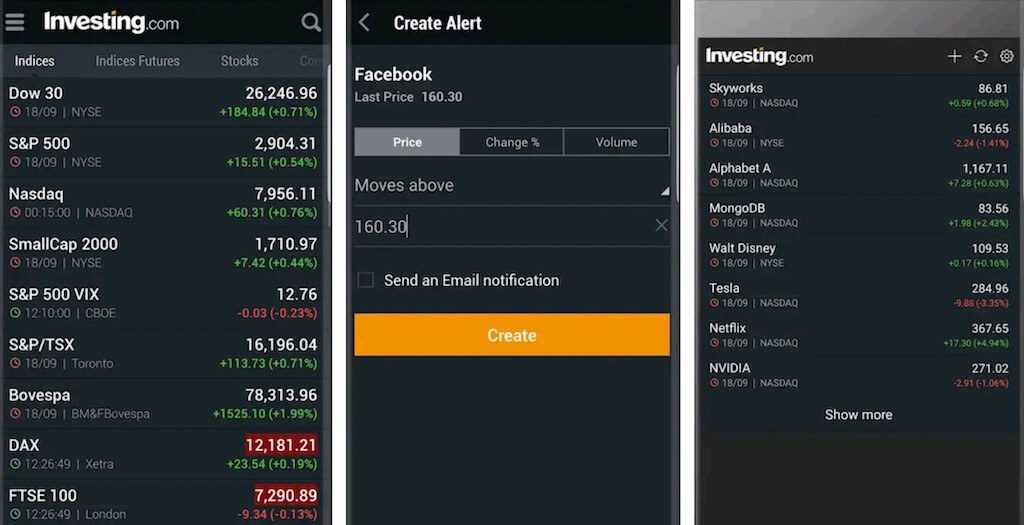 Investing.com est une excellente application pour suivre les cours des actions. Bien sûr, vous pouvez trouver les mêmes informations dans la recherche Google, mais avoir un widget fixé sur votre écran d'accueil qui affiche les mises à jour des prix en temps réel est une option plus pratique.