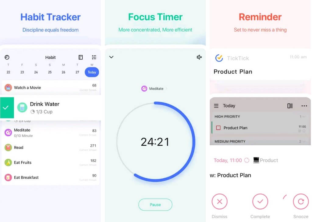 La version gratuite de TickTick vous permet d'ajouter des rappels pour vos tâches (jusqu'à 2 rappels par tâche), vous n'avez donc pas à vous soucier d'oublier de faire quelque chose. Pour ceux qui veulent lutter contre leurs habitudes de procrastination, un widget de minuterie Pomodoro utile vous aidera à devenir plus productif lorsque vous travaillez.