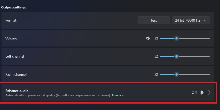 Le dernier Windows 11 est livré avec une fonctionnalité intégrée d'amélioration audio appeléeAméliorer l'audio, qui améliore automatiquement l’expérience sonore du système lorsqu’il est activé. Vous pouvez l'essayer en suivant les invites mentionnées ci-dessous sur votre PC Windows 11 :