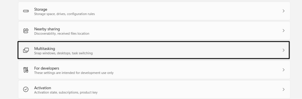 1.Lancez leApplication Paramètressur votre ordinateur et sélectionnez leMultitâcheoption sur le côté gauche.