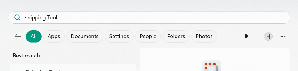 2.Dans leChamp de recherche Windows, taperOutil de captureet choisissez-le dans les résultats de la recherche.