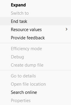 - Faites un clic droit sur le programme et sélectionnezFin de tâche.