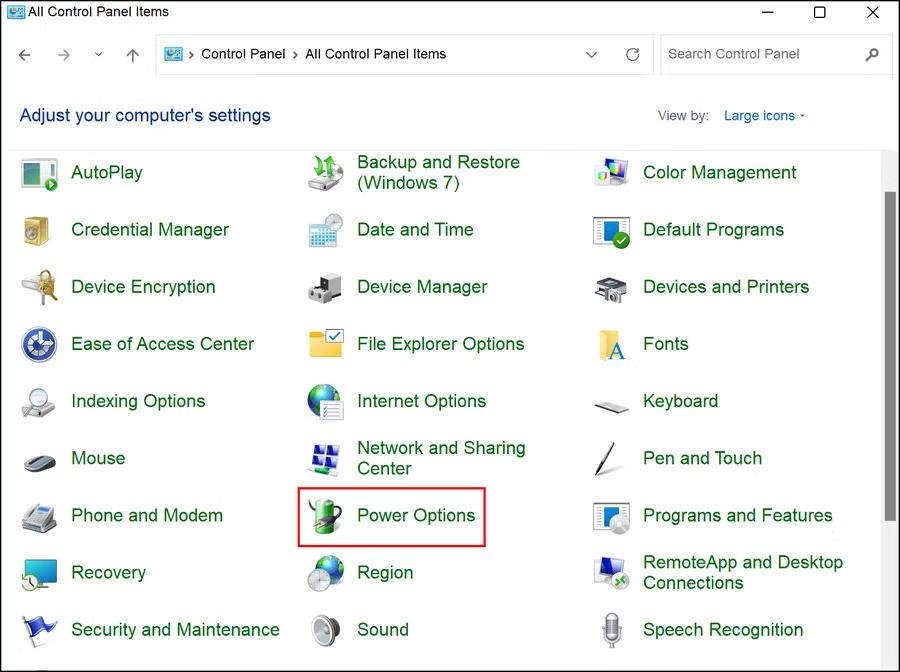 Étape 4 :Recherchez maintenant le bouton Options d’alimentation et cliquez dessus.