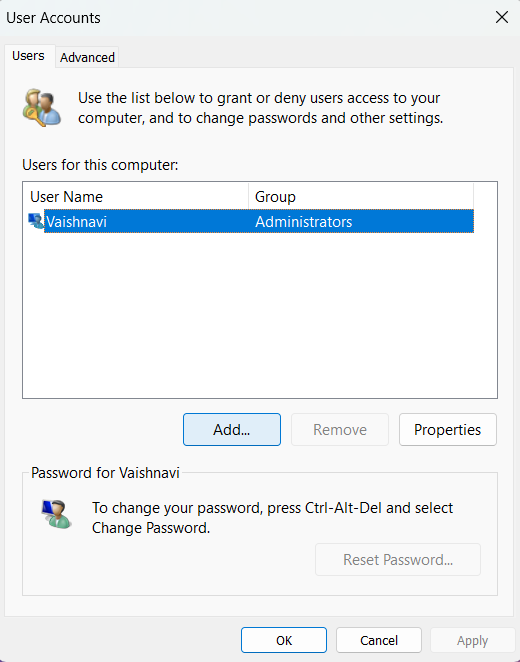 Option 1 : créer un compte utilisateur local dans Windows 11 à l'aide de NETPLWIZ