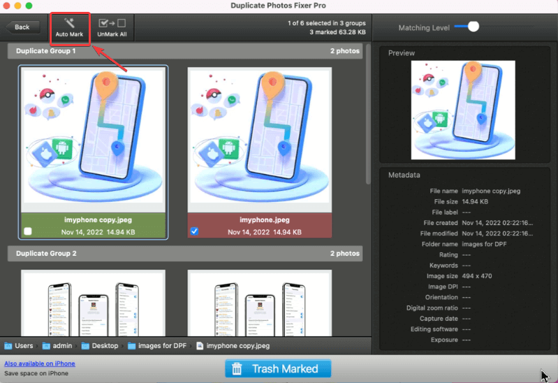 Ici, une sage décision consiste à utiliser un outil de suppression de photos en double. Prenez par exemple Duplicate Photos Fixer Pro. Il effectue une analyse approfondie, permet de détecter et de supprimer des photos exactes et similaires en quelques clics. Il organise automatiquement les doublons par groupe, afin que vous puissiez marquer automatiquement une photo en double dans chaque groupe en un seul clic.