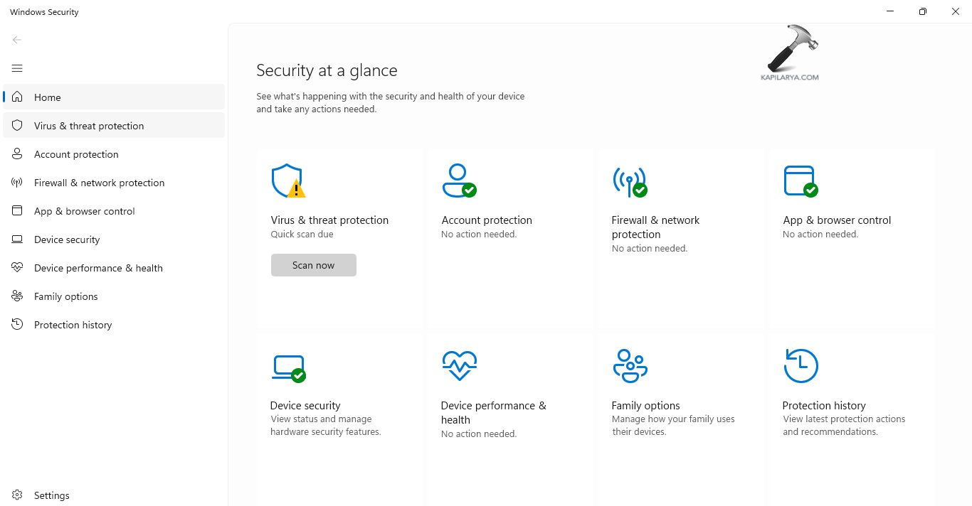 Étape 1-Ouvrez la sécurité Windows et accédez à Protection contre les virus et les menaces.