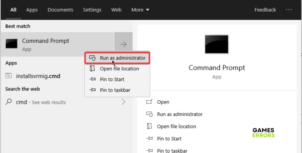 1. Ouvrez le menu Démarrer et tapezcmd, puis exécutez l'invite de commande en tant qu'administrateur.