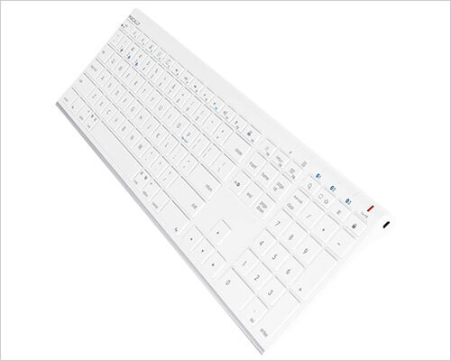 La durée de vie de la batterie du clavier est longue car elle se met automatiquement en veille après avoir remarqué une inactivité de 3 minutes. Appuyer sur n’importe quelle touche le réveillera. De plus, les touches sont rétroéclairées par LED, ce qui est utile pour regarder la télévision dans l'obscurité. Enfin, le clavier est disponible en quelques coloris pour s'adapter à votre intérieur.