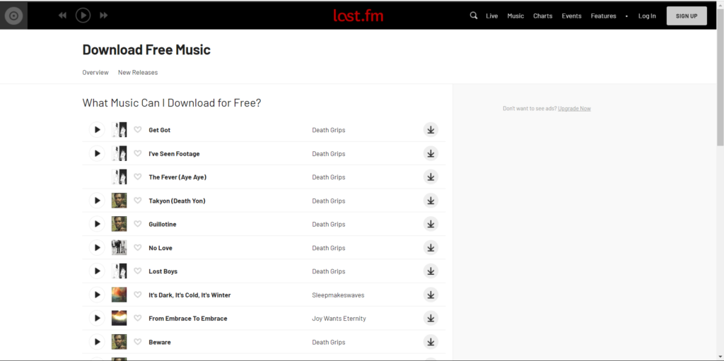 Le prochain site qui vous permet de télécharger des morceaux gratuitement estLast.fm, qui est un service de musique alimenté par Spotify. Cela suggèremusique basée sur des informations sur les chansons que vous écoutez.