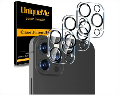 Voici un autre protecteur d’objectif d’appareil photo pour iPhone 12 Pro Max livré avec un protecteur d’écran pour garantir la sécurité de votre appareil. Il est solide et résistant aux rayures pour éviter tout dommage à l'objectif.