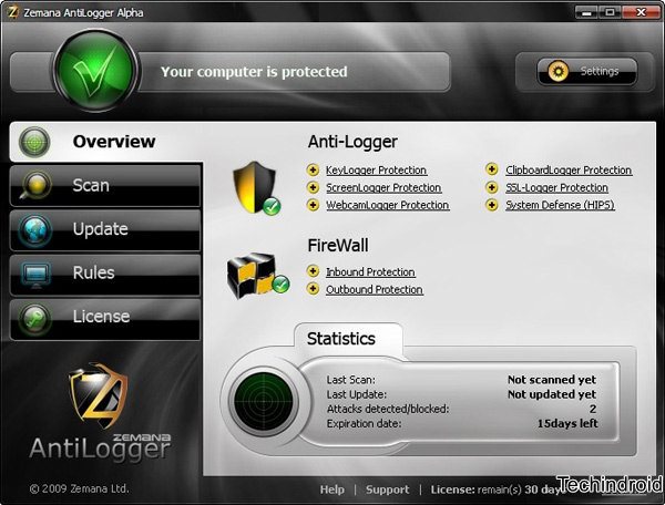Zemana AntiLoggercrypte toutes les frappes au clavier, rien à installer sur votre ordinateur. Il fonctionne avec toutes les applications que vous avez installées et seule l'application elle-même que nous utilisons à un moment donné sait ce que nous écrivons. Zemana AntiLogger La bonne chose est qu'il est complètementoutil anti-keylogger gratuit.il suffit de l'installer et de l'oublier car il fonctionne en permanence en arrière-plan. Ne comprenez simplement pas à quoi ressemblent les séquences et les raccourcis de Zemana AntiLoggerCTRL + X ou la touche ENTRÉE.