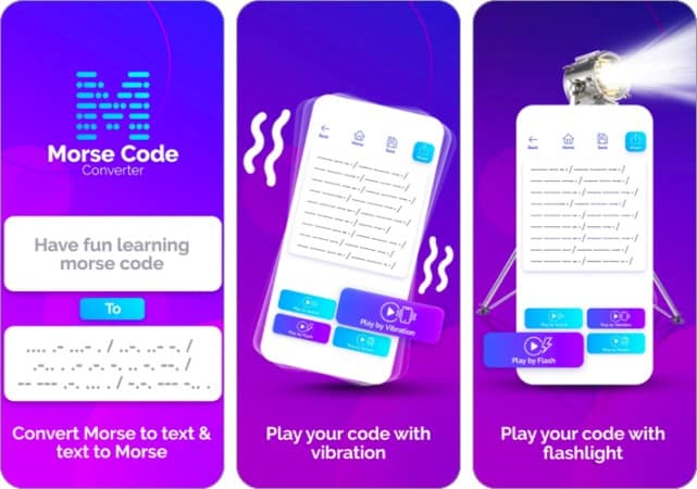 Une autre fonctionnalité intéressante est qu'elle vous permet de convertir le code Morse en texte et vice versa. De plus, vous pouvez transmettre le code Morse sous quatre formes différentes (son, flash, vibration et écran). Il existe également une sorte de dictionnaire pour chaque alphabet, symbole et chiffre, y compris ce qu'ils représentent dans le code Morse. De plus, vous pouvez enregistrer votre code Morse écrit.