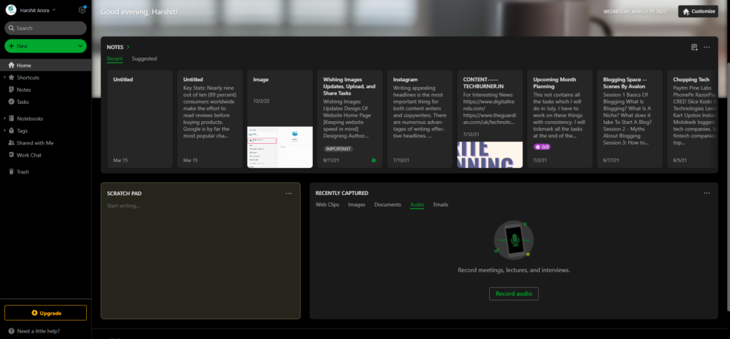 La prochaine application sur notre liste estEvernote. Evernote est une application de prise de notes qui vous permetnotez toutes vos pensées et idéesen un seul endroit et accédez-y à tout moment et n'importe où, car cela fonctionne également sur mobile.