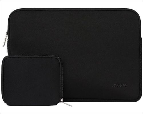 Les deux fermetures éclair à ouverture supérieure de cette housse pour ordinateur portable MOSISO vous permettent d'accéder facilement à votre MacBook Air sans craindre de le laisser tomber ou de le rayer. De plus, ce produit dispose d'un petit sac de rangement pour vous aider à transporter votre souris et vos écouteurs avec l'ordinateur portable. Heureusement, la petite pochette a la même couleur et la même texture que son homologue plus grande. Ainsi, vous pouvez toujours jumeler vos accessoires sans payer un centime supplémentaire.