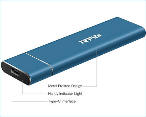De plus, TEYADI est disponible en trois variantes : 128 Go (42,99 $), 250 Go (65,99 $) et 512 Go (96,99 $). Vous pouvez l'utiliser sur les PC Mac et Windows.