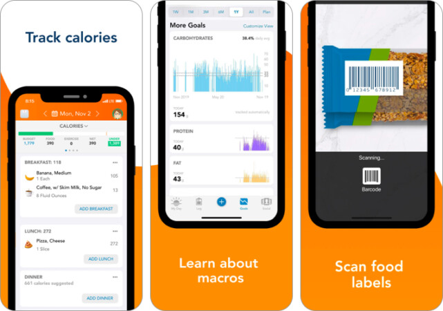 Pour démarrer avec les applications, vous devez saisir quelques données. Une fois cela fait, vous obtiendrez un nombre de calories en fonction de votre objectif. Cependant, la version gratuite ne fournit pas d’informations sur la consommation de macronutriments. Pour vous aider à suivre votre consommation alimentaire, vous pouvez scanner des codes-barres ou ajouter le nombre de calories.