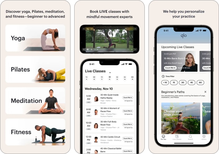 3. Application Glo Yoga et méditation – Assistez à des cours en direct