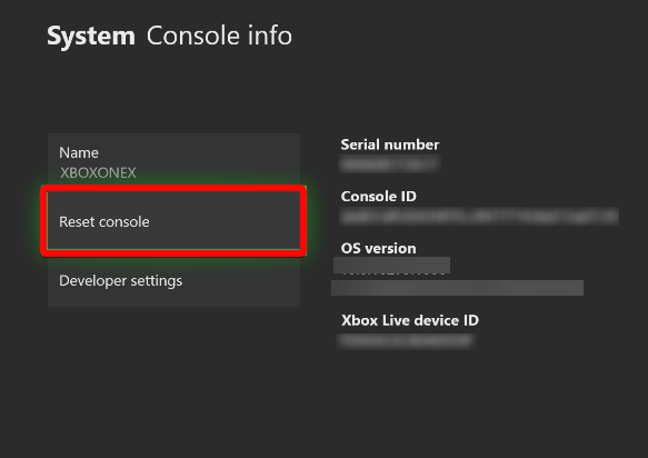 - Ensuite, appuyez sur l’option Réinitialiser la console sur la gauche.
