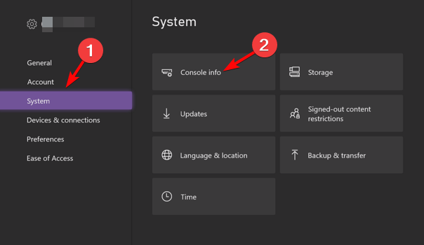 - Ensuite, accédez àParamètres,sélectionnez Système dans le menu, et à droite, sélectionnezInformations sur la console.