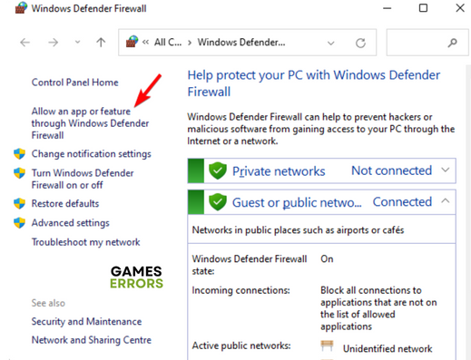 Windows Defender Firewall est une application de sécurité qui protège votre PC de toutes sortes de menaces. Il se peut que l'application reconnaisse Days Gone ou certains de ses fichiers comme une menace, provoquant ainsi un crash constant. Par conséquent, ajoutez le jeu à la liste des exceptions du pare-feu pour éviter de nouveaux plantages. Suivez les étapes ci-dessous :