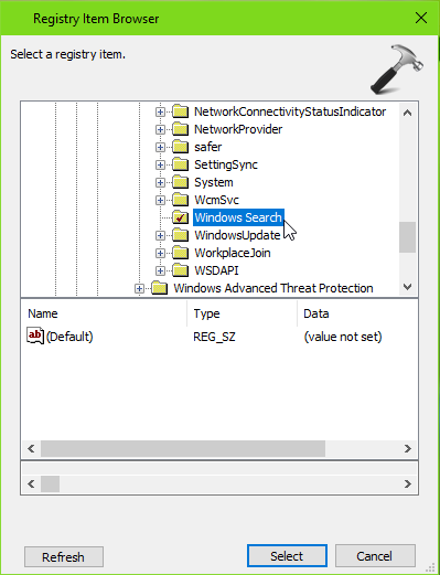 5.Ensuite, dans le navigateur d'éléments de registre, localisez la clé de registre et cliquez surSélectionner.