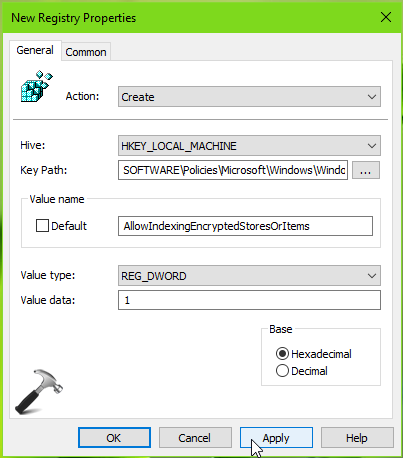 Cet article vous montrera une approche étape par étape pour déployer une clé ou un élément de registre à l'aide de la stratégie de groupe. Pour illustrer ce processus, nous allons créerAllowIndexingEncryptedStoresOrItemsregistre DWORD àHKEY_LOCAL_MACHINE\Software\Policies\Microsoft\Windows\Windows Searchet définissez-le sur 1. Ce registre DWORD est créé pourautoriser Windows 10 à indexer les fichiers cryptés.